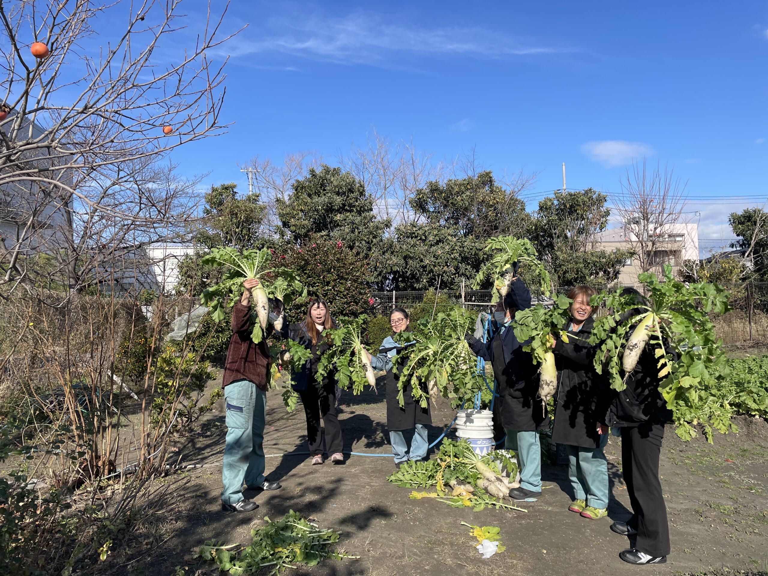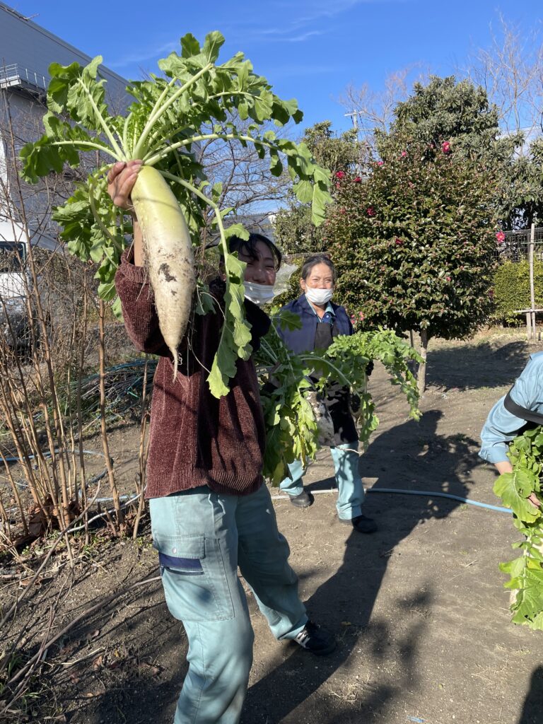 みんなで「とったぞー!」と声を上げながら、笑顔いっぱいの楽しい収穫の時間になりました。 自分たちで収穫した野菜の味はきっと格別なはず。 今夜はみんな、大根料理で食卓が賑わいそうです!
